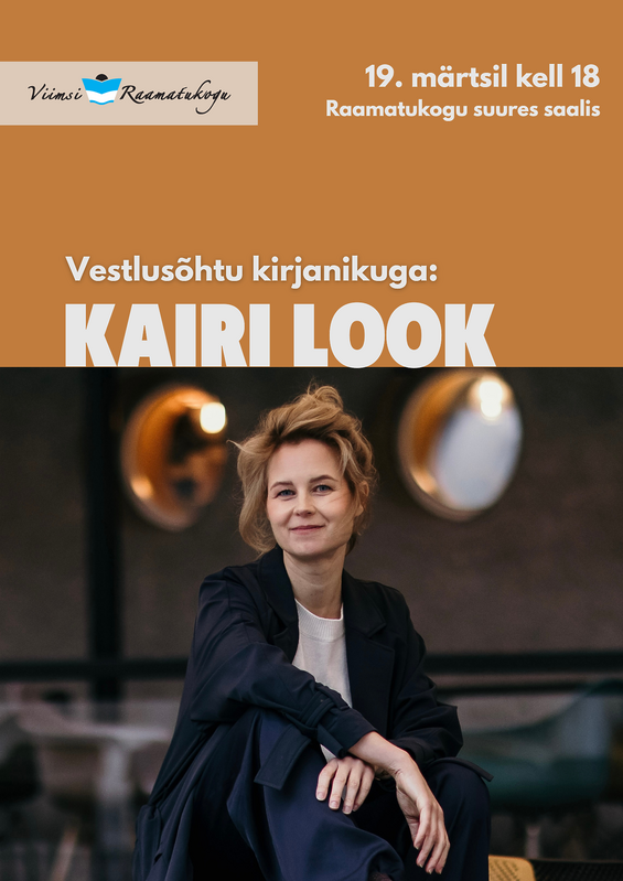 Vestlusõhtu kirjanikuga: Kairi Look 19. märtsil kell 18 raamatukogu suures saalis Kui sa ei soovi pildile jääda, siis anna sellest pildistajale teada Vestlusõhtu kirjanikuga: Kairi Look Külla tuleb kirjanik ja prosaist Kairi Look, kes pälvis oma esikromaaniga „Tantsi tolm põrandast“ mullu aasta kirjaniku tiitli. Varem peamiselt lastekirjanikuna tuntud Kairi Look usub, et heas ja säravas sõnas on palju jõudu. Oma tundeküllase debüütromaaniga on ta suutnud imeliselt kõnetada ka täiskasvanud lugejat.
