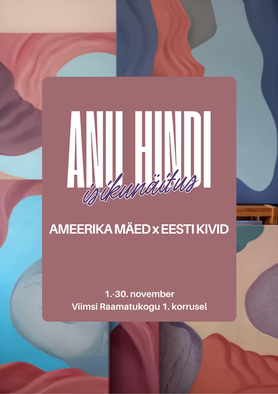 Anu Hindi isikunäitus Novembris raamatukogu 1. korrusel novembril toimub ka temaatiline reisiõhtu Anu Hindi isikunäitus Vaba sissepääs, oled lahkesti oodatud! | ||